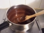 La veille, je prépare la ganache au chocolat. Elle semble parfait, je suis contente. Je goute. Pas trop mal. Je la mets au frais et commence à préparer les oeufs pour demain. Je casse les oeufs, sépare donc les blancs des jaunes (il faudrait les monter en neige) et mets tous ça dans des petites coupelles direction le frigo. Demain, j’attaque la partie la plus dure. Fight! è_é