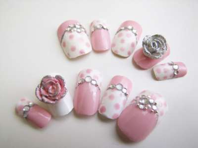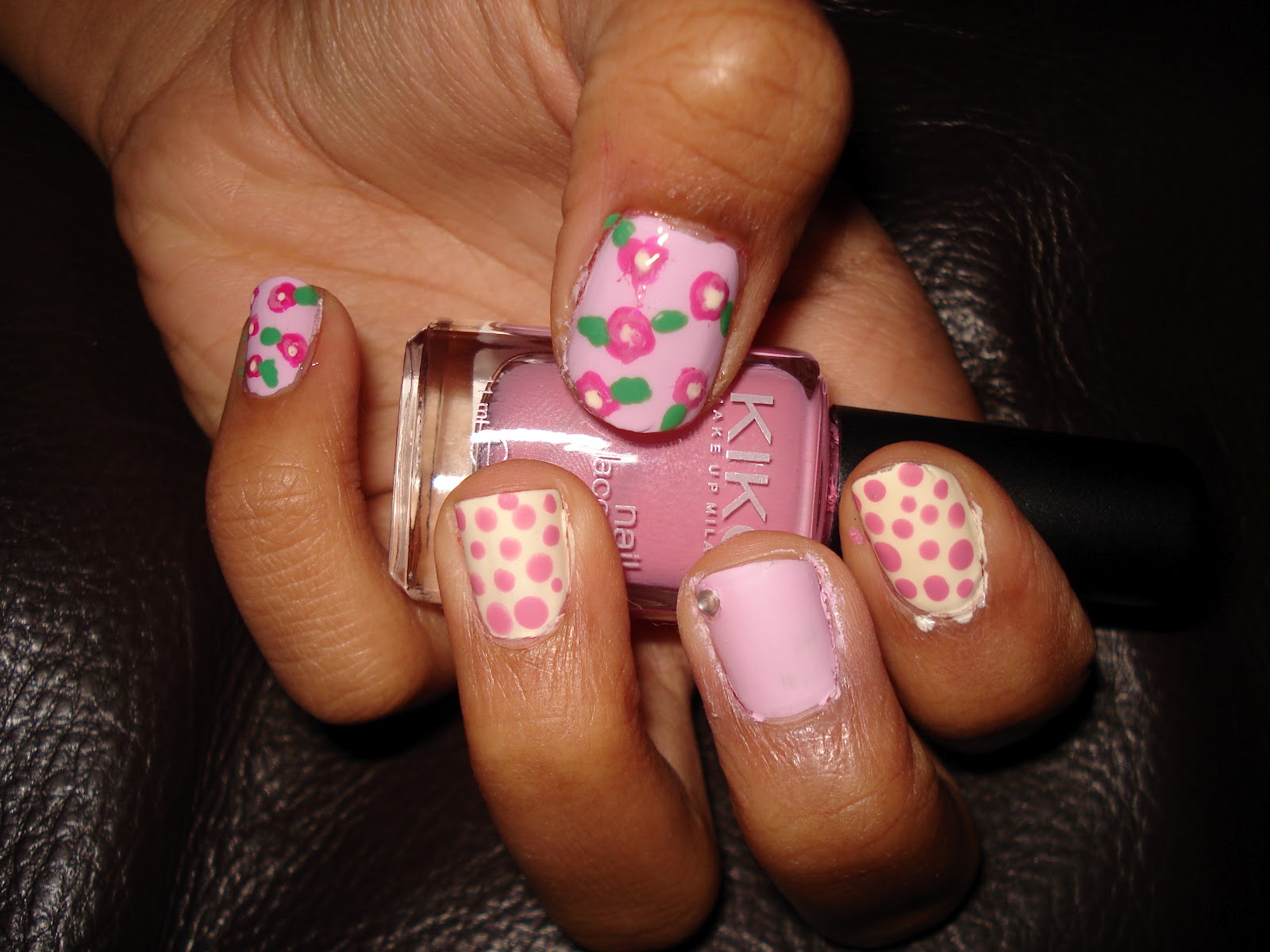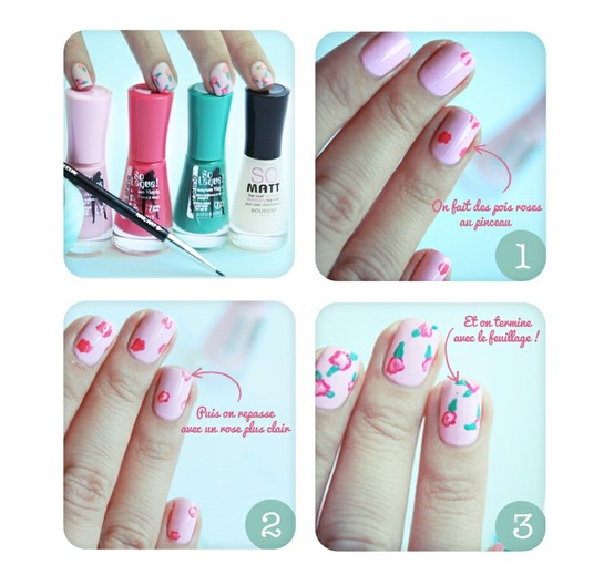 J’avais vraiment envie de tester le nail art fleuri mais j’avais craqué sur un autre avec des poids rose pastel sur fond blanc. Dilemme!