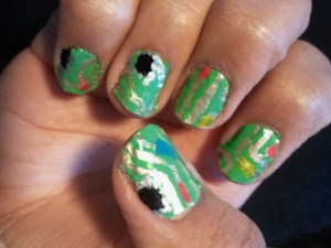 C’est vrai que c’est spécial comme nail art. C’est vert XD (je pense pas en refaire de cette couleur :s)