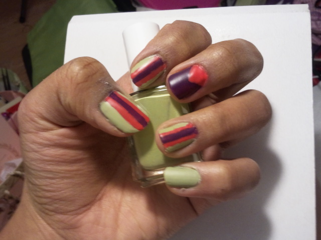 Bref pour ne pas me répéter je ne suis pas satisfaite XD C’était plutot sympa d’essayer de reproduire un truc mais j’aime pas trop le résultat que ça a donné. Je pense qu’avec un séchage plus long des carrés violets ça aurait moins bavé et je n’aurais pas du à le retaper au dotting tools. Pour l’autre je suis un peu dégoutée car comme je l’ai remarqué il y a longtemps le top coat mat ne tient pas spécialement bien et le vernis s’est barré au bout des ongles. Mais bon, on va dire défi relevé malgré tout ;)