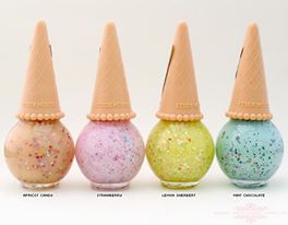 1. Les Vernis Ice Cream line par Etude House. Je vous en avais déjà parlé ici, ces vernis que j’ai découvert il y a 1 an, qui date de 2013-2014 il me semble. Je me demande vraiment comment j’ai pu passer à coté. L’ancienne collection « Ice Cream » était composé de vernis à pailletés, mais celle-ci est un peu plus dans les tons estivales je trouve: du corail, du bleu piscine, du jaune pétant, du mauve tout doux,… Je la définirais comme acidulé et pastel. Actuellement j’ai le bleu, le marron, le vert et le orange. Il m’en manque encore quelques uns.