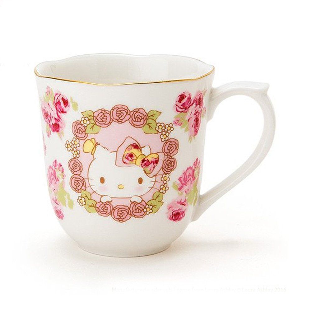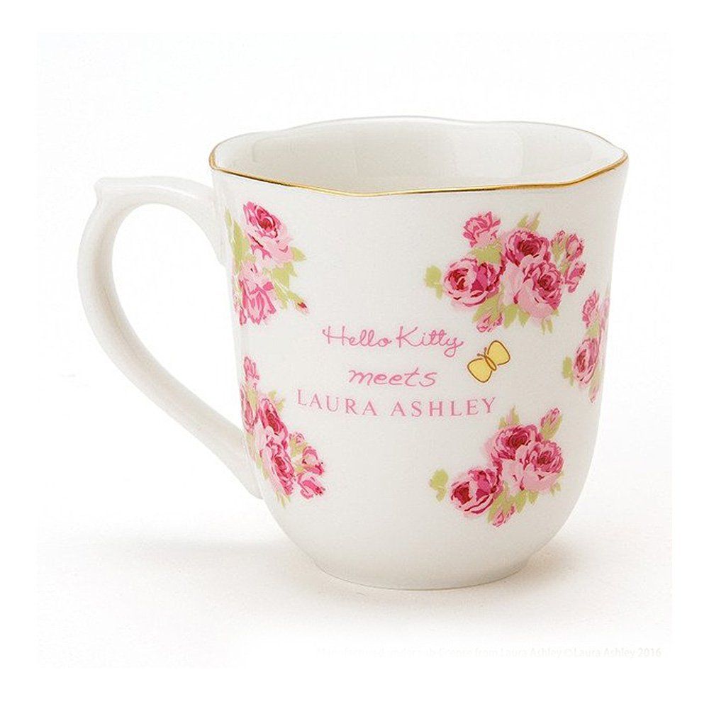 En 2016 est sortie une collection Hello Kitty meets Laura Ashley. Si vous ne connaissez pas Laura Ashley c’est une marque qui fait beaucoup d’accessoires de maison type set de lit, nappes, serviette, vaisselle avec un esprit Shabby chic et fleurit.