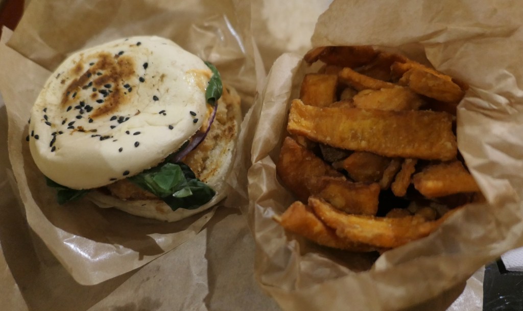 Our meal was cold but delicious. Shiso burger another name to know for asian fusion food. I take ebi burger (shrimp) and sweet potatoes chips.