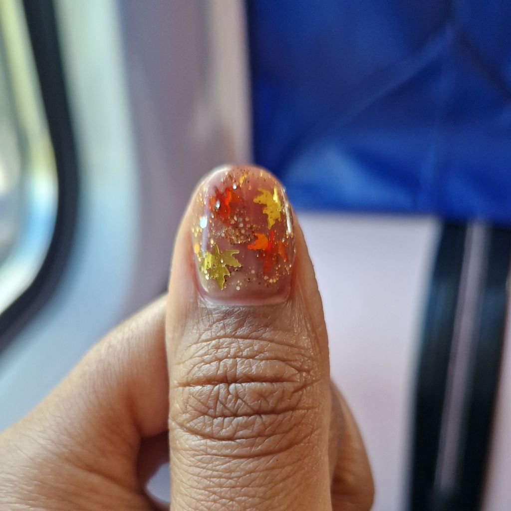 This time I really want something more special with glitter, maple leaves to remind me my wonderful travel.