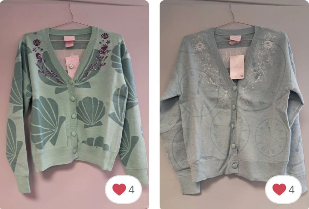 J’ai d’ailleurs trouvé ces 2 cardigans beaucoup trop cute La petite sirène et Cendrillon sur vinted.