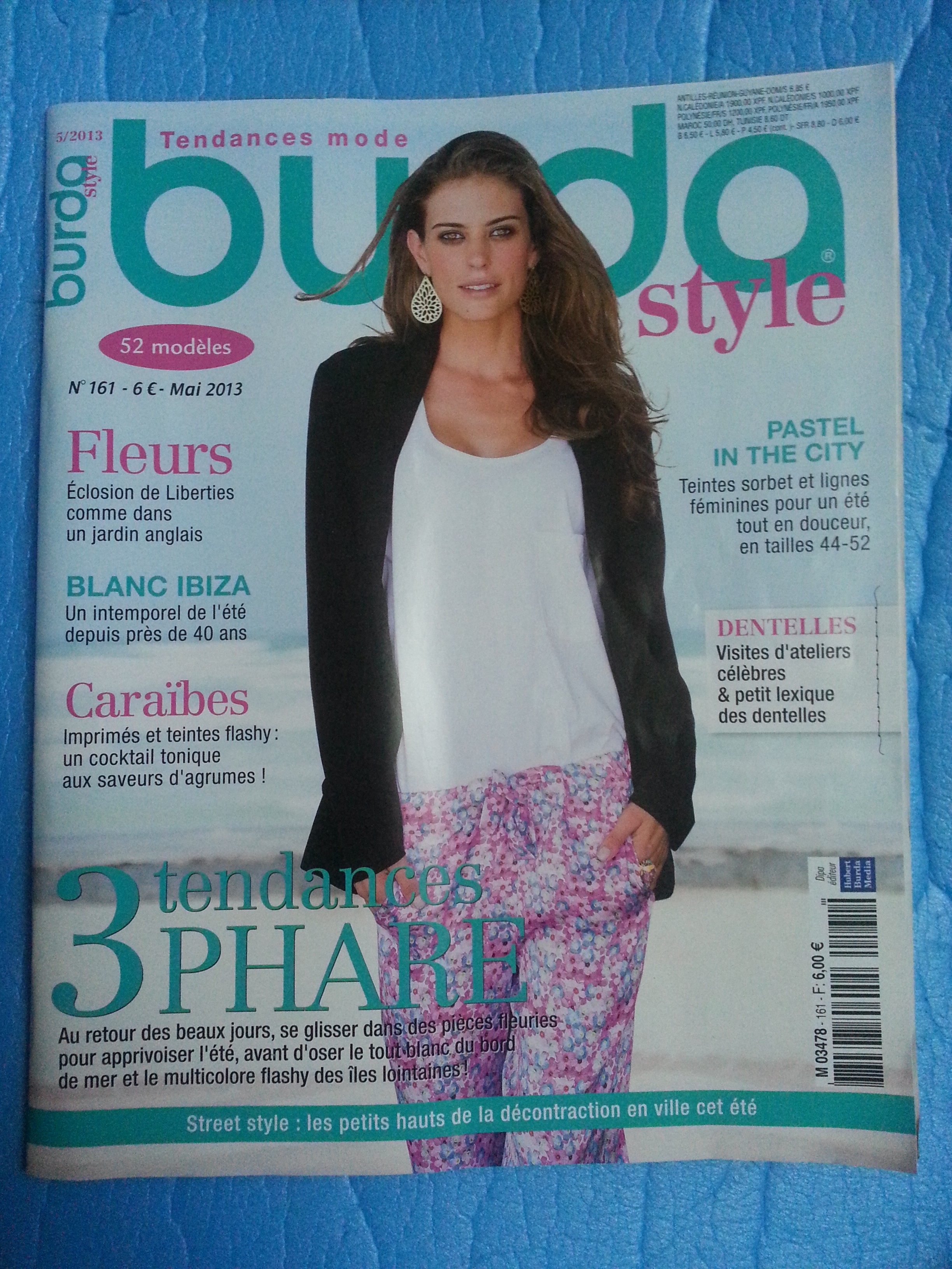 Une fois encore je vais vous parler de couture. Oui, encore XD A vrai dire en ce moment je fais quasiment que ça quand je ne bosse pas mon toeic (que j’ai enfin validé :D) ou surfe (inutilement) sur le net. Bref pour faire court j’ai découvert que le marchant de journaux vendaient des magasines de coutures mais pas comme « Art et décos » ou ceux qui contiennent un peu de tout, réservé à la couture uniquement. Bon je savais dans un sens que ça devait exister mais j’ai été surprise car je ne m’attendais pas à trouver Burda Style au relay de ma gare. En gros Burda c’est une marque allemande qui créé des tas de patrons de couture. Le livre était à 6€ mais dedans il y a 12 modèles plus ou moins similaires. Mais je trouve qu’à 6€, ça va parce que souvent on trouve des patrons, seuls, dans les environs de 10€ (hors ebay et cie).