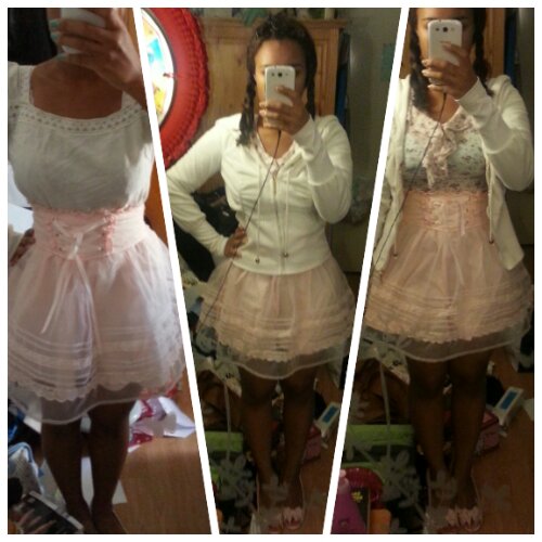 Otherwise I try some ugly coordinations. I don’t know what shirt put with this skirt… I’m not god at coordination XD Sinon j’ai tenté quelques coordinations (foireuses) mais j’avoue ne pas avoir trouvé quoi mettre avec ma jupe. Moi et la coordination…