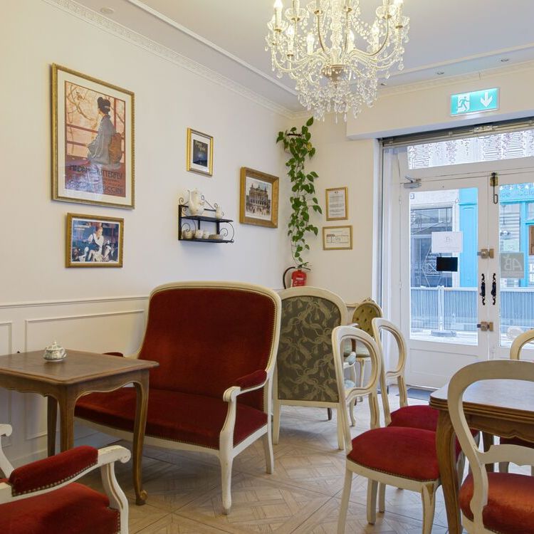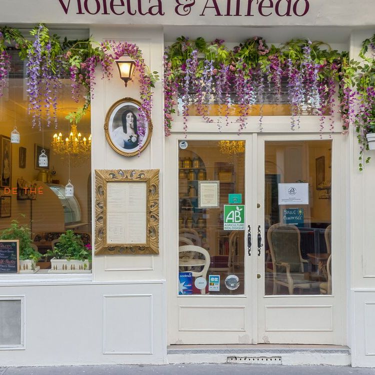 Ce qui est vraiment drôle c’est que c’est vraiment pas loin de mon travail dans le 9ème arrondissement de Paris… et pas si loin de Montmartre à vol d’oiseau. J’adore ce coin! Pour une fois, je suis arrivée là première parmi mes copines, un exploit quand on sait que je suis la reine des retards. A mon arrivée, j’ai toute suite été charmé par la devanture qui est tellement cuuuuute! Elle était beige, avec des glycines et un écriteau violet. J’aime tellement les glycines! Puis de dehors on pouvait entrevoir l’intérieur qui était très joli, façon salon de thé! Petite anecdote « awkward », il y avait un fou qui trainait pas loin malgré les gens qui attendaient… Heureusement il est pas resté très longtemps.