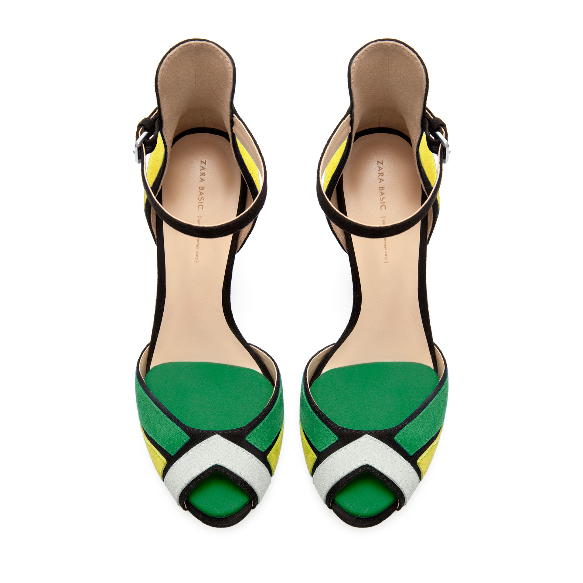 5. Sandales à bride de chevilles Zara: J’ai flashé dessus en surfant sur instagram, la page de Pshiiit plus exactement qui avait acheté les bleus. J’ai vu qu’elles existaient aussi en jaune/vert et en corail. Entre bleu et jaune/vert mon coeur balance <3 Je vois bien les jaunes vertes avec ma future robe wax (qui n’est pas prête d’être cousu avant un bail…). Seulement 10,6cm, c’est un peu beaucoup trop haut pour moi qui galère déjà avec plus de 5cm. Mais avouez qu’elles sont belles <3
