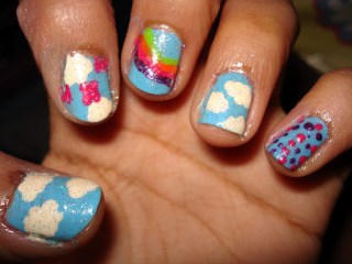 Bref pour ne pas me répéter je ne suis pas satisfaite XD C’était plutot sympa d’essayer de reproduire un truc mais j’aime pas trop le résultat que ça a donné. Je pense qu’avec un séchage plus long des carrés violets ça aurait moins bavé et je n’aurais pas du à le retaper au dotting tools. Pour l’autre je suis un peu dégoutée car comme je l’ai remarqué il y a longtemps le top coat mat ne tient pas spécialement bien et le vernis s’est barré au bout des ongles. Mais bon, on va dire défi relevé malgré tout ;)