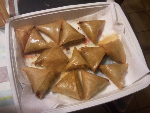 Mais le truc du moment, ça a été les samossa végétarien indien. Feuille de brick, pomme de terre petits pois et épices. Un régal! J’avais l’habitude de commander quand on allait au resto à coté du boulot (avant que la boite déménage). J’ai suivi la recette ici que j’ai modifié à ma sauce. Franchement je vous recommande la recette!